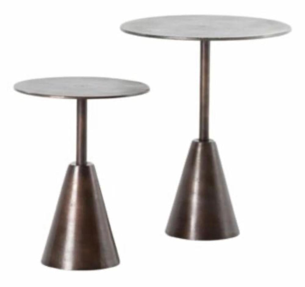 طاولة هندي جانبية دائرية هيكل فضي معدن قاعدة مخروطة مقاس كبير