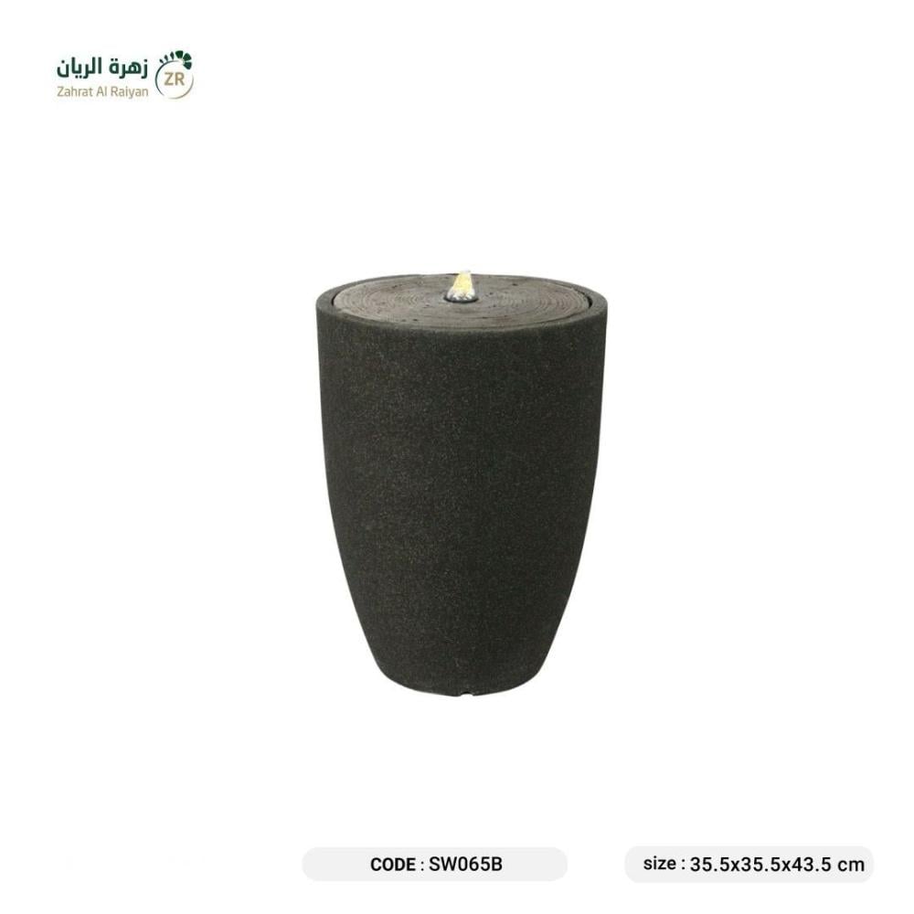 نافورة شكل فازة لون اسود مصنوعة من البولي ايثيلين عالي الكثافة (HDPE) ذو طابع حجري ومزودة باضاءة ناعمة
